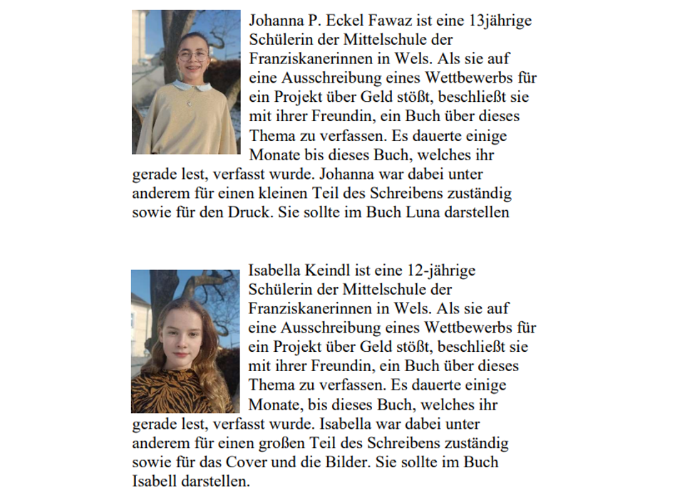 Im Podcast der Schüler:innen aus Zell am See geht es darum, wie man schon als junge Person gut mit Geld umgehen kann. Sie sprechen über eigene Erfahrungen, aber auch über aktuelle Themen, mit denen Jugendliche tagtäglich konfrontiert werden. Beglleitend zum Podcast wurde eine Präsentation mit den wichtigesten Informationen erstellt.