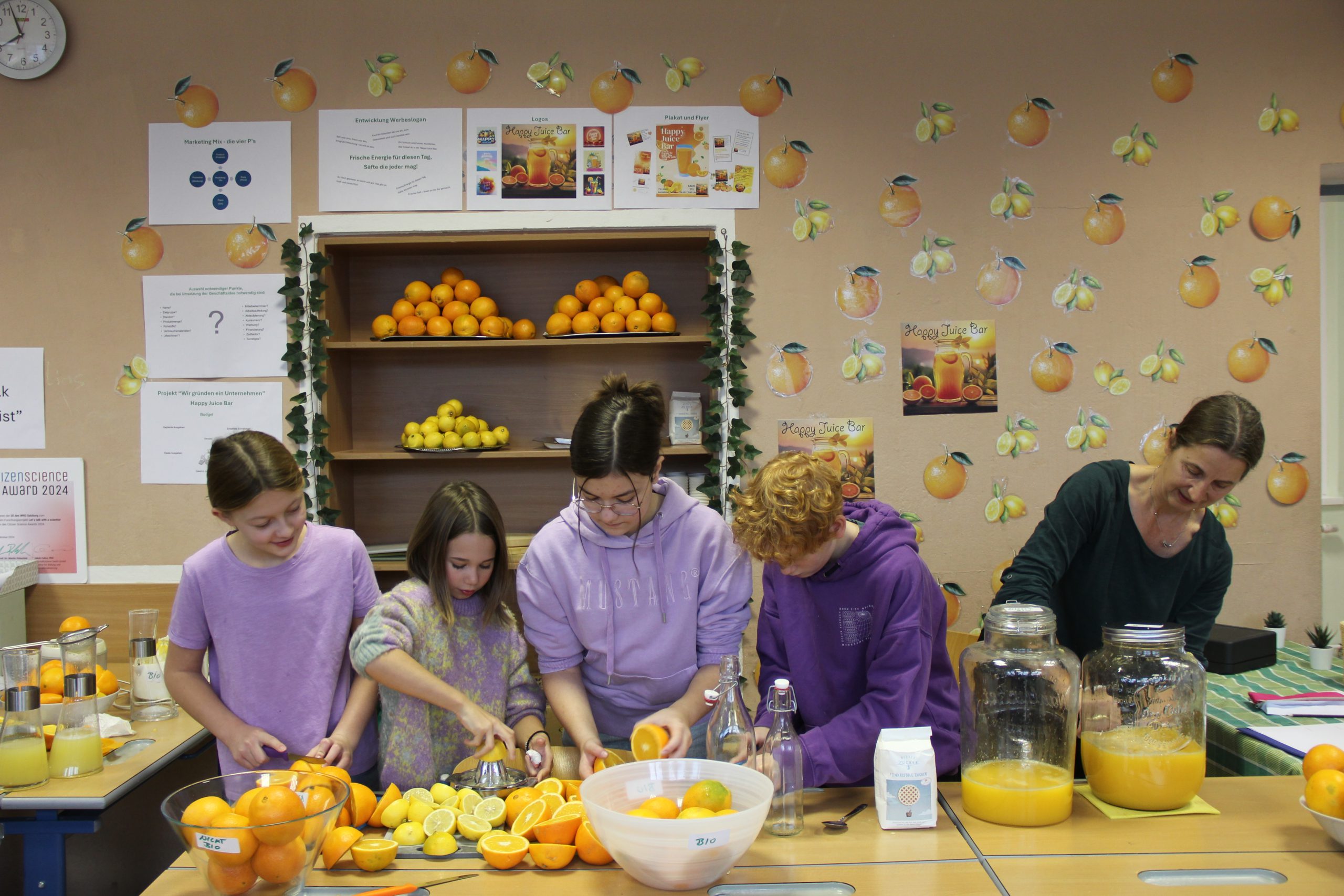 Die Schüler:innen der 3e des WRG Salzburg gründeten im Rahmen eines Projekts die „Happy Juice Bar“ und setzten dabei ein fiktives Unternehmen eigenständig um – von der Ideenfindung über die Budgetplanung bis zur Vermarktung. Am Tag der offenen Tür wurde das Konzept praktisch umgesetzt und im Anschluss reflektiert. So wurden betriebswirtschaftliche Grundbegriffe wie Budget, Einnahmen, Ausgaben oder Gewinn durch eigenes Handeln verständlich und lebendig vermittelt.