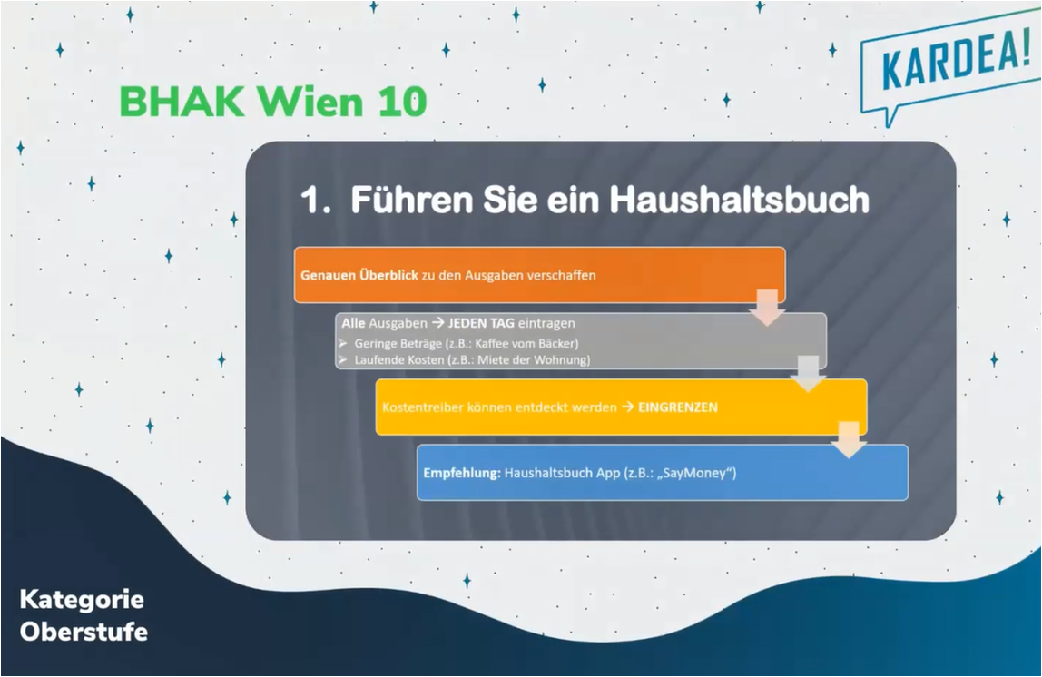 Und auch bei der Preisverleihung freuten wir uns über die Anwesenheit dieser Ehrengäste sowie von Vertreterinnen der Jury und natürlich zahlreicher Schülerinnen und Schüler mit ihren Lehrkräften. Besonderes Highlight war eine persönliche Videobotschaft des Finanzministers Gernot Blümel an die Preisträger*innen!